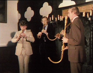 Here are a few more clips from the David Munrow TV special posted earlier. The show was called Early Musical Instruments and aired in 1976. There were 6 episodes, each involving Munrow and a group of wan Englishmen making a racket with a certain family of instruments - reed instruments, strummed ones, percussion, etc. Some of them are positively evil looking, such as the gemshorn, a recorder made seemingly out of satan's antlers, or various guitar-like monsters with about twenty strings and nightmarish dragon-like tuning heads. The series was filmed at the beautiful and eerie Ordsall Hall in Salford, known for the ghosts of a White Lady and young girl that have been seen in its staircases.